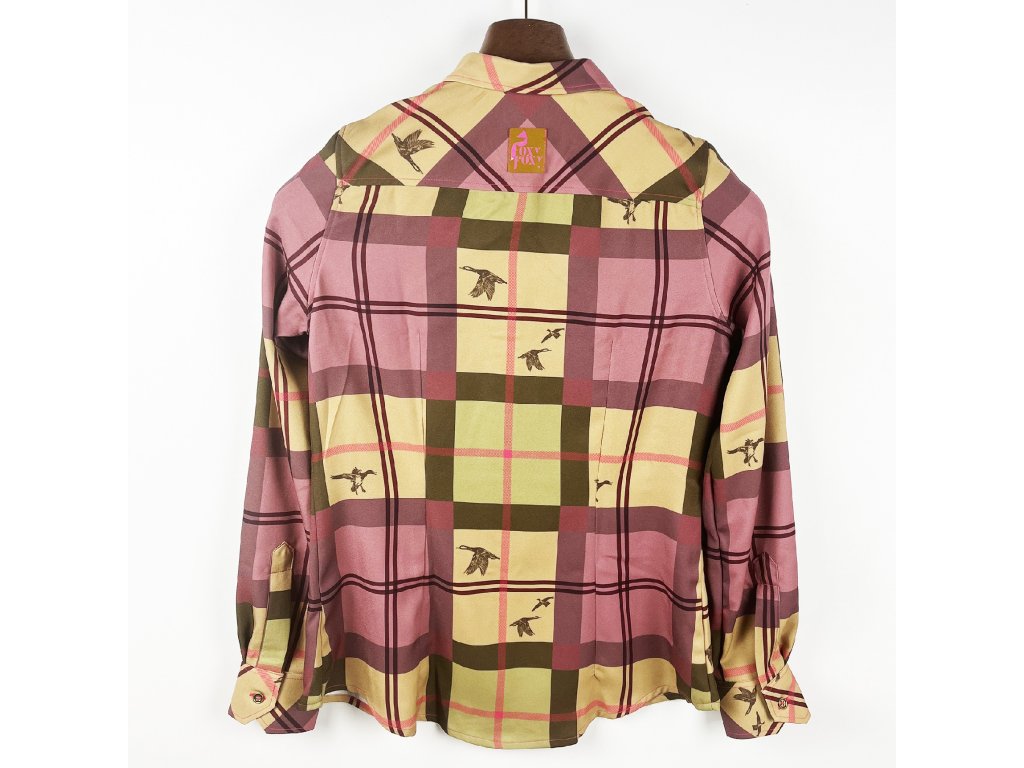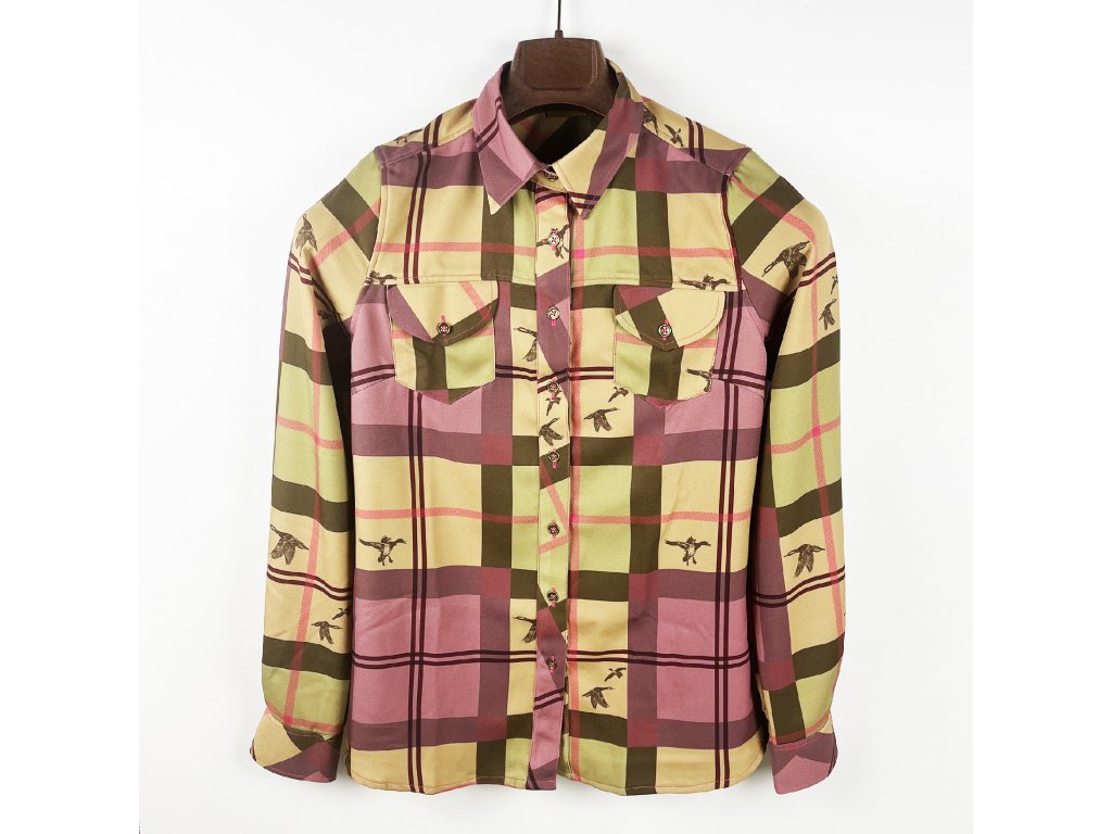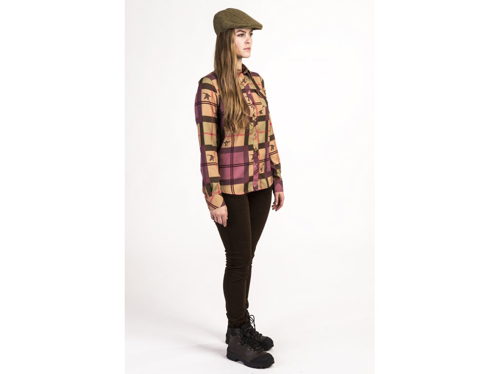 Tato košile v zelenotmavěrůžovofialových odstínech s motivem kachen je velmi příjemná na nošení nejen do lesa. Je mírně elastická, což zaručí volnost pohybu v jakékoliv situaci. Nemačká se, slušivý střih, praktické nošení i údržba je velikou výhodou.