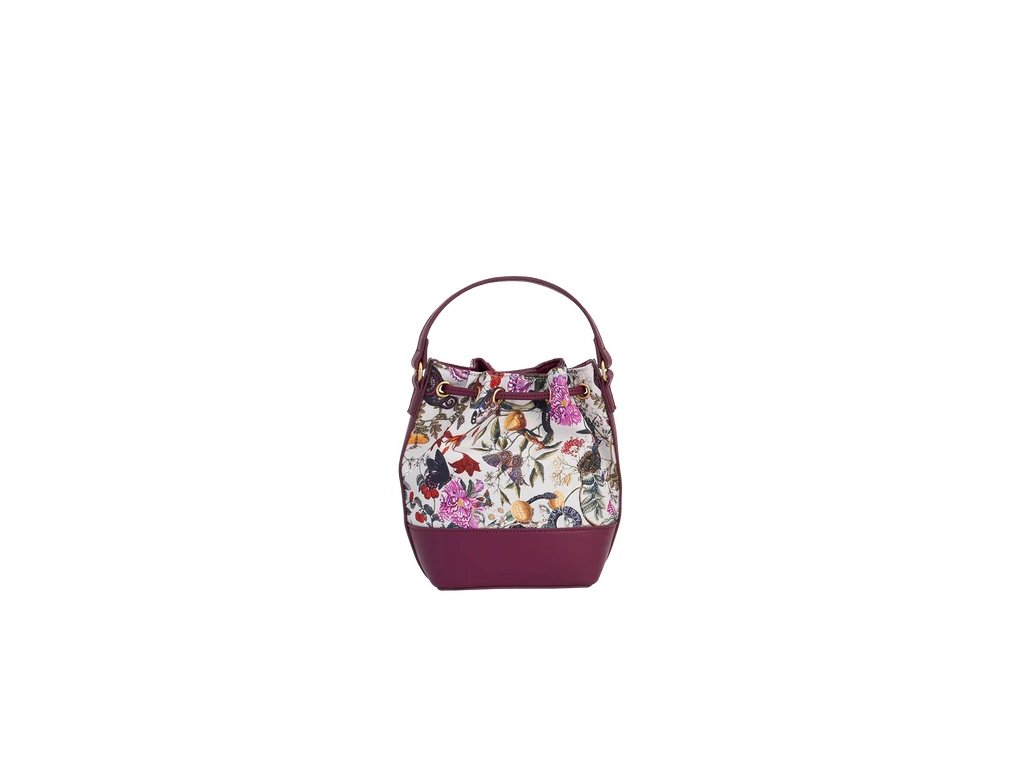 Má snadno uchopitelné horní ucho, luxusní kování ve zlaté barvě a bezpečné zapínání se stahovací šňůrkou.