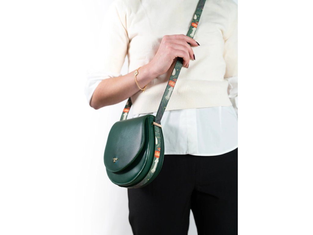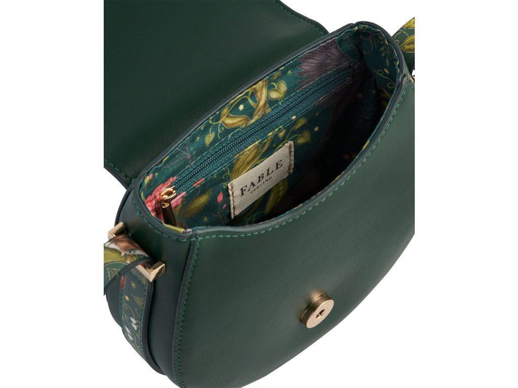 Catherine Rowe vnesla své kouzlo do naší nejprodávanější klasické podsedlové brašny. Zakřivený design brašny evokuje atmosféru venkovského života a připomíná klasickou jezdeckou podsedlovou brašnu, ale s magickým povrchem díky aplikaci našeho potisku Into The Woods na popruhu. Tato kompaktní crossbody taška ze zelené alternativní kůže je perfektním doprovodem na vaše každodenní dobrodružství.