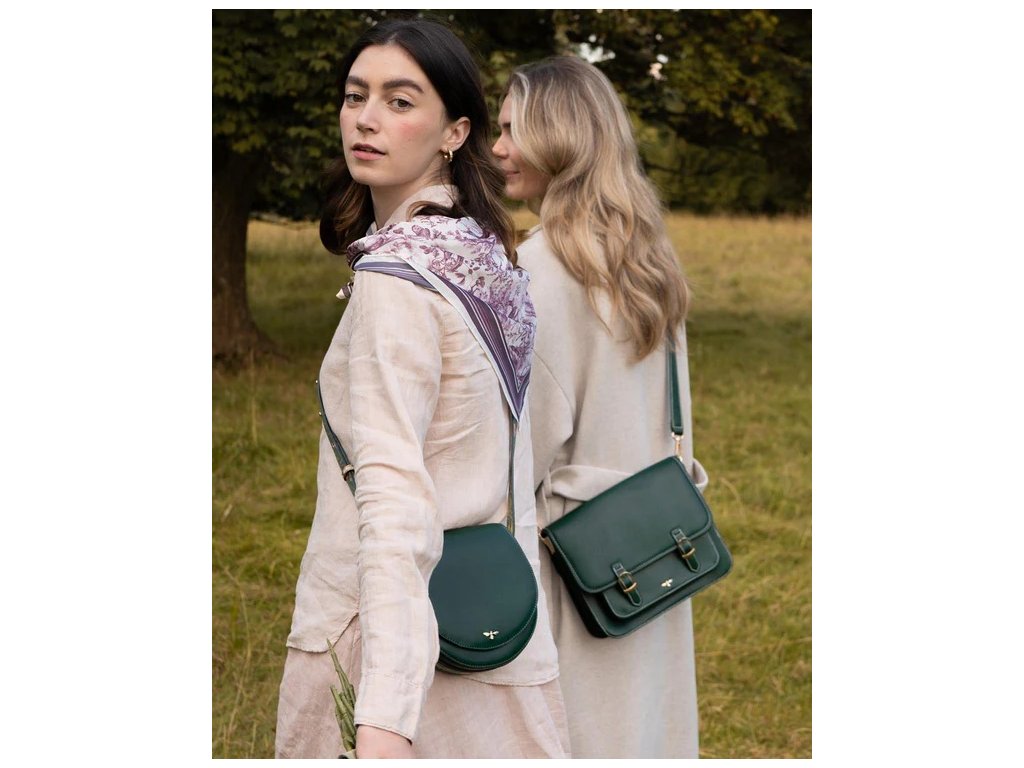 V tmavé lesní zelené barvě nabízí úhledné přihrádky na vaše nezbytnosti, dvě zlaté přezky pro zajištění všeho uvnitř a nastavitelný ramenní popruh pro zajištění pohodlného nošení.