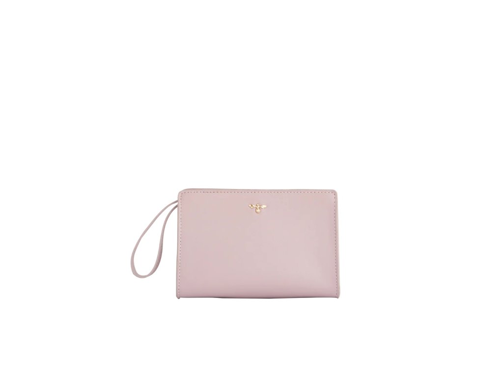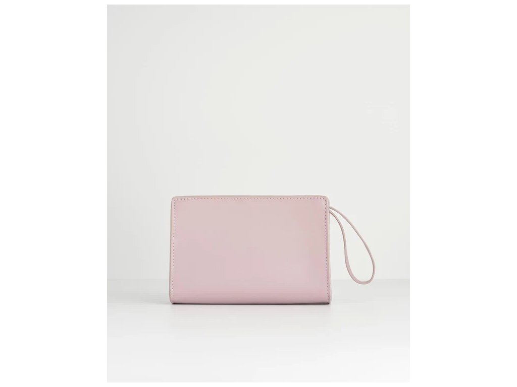 Malá kabelka na zápěstí je vyrobena v ženském odstínu šeříkové.