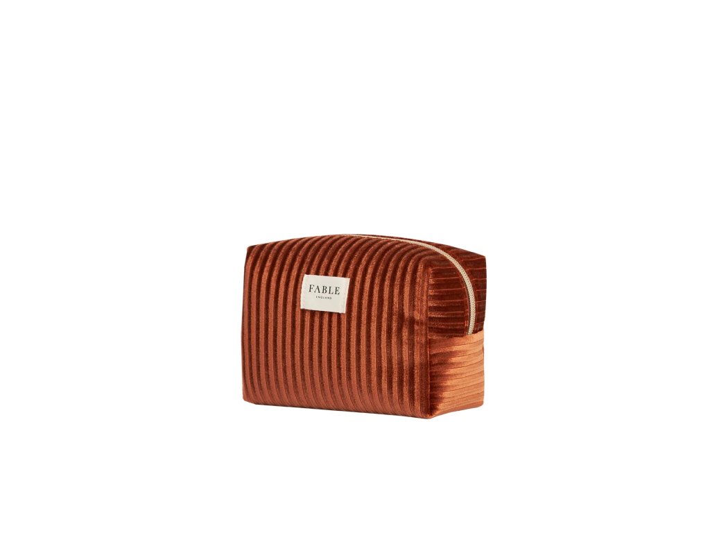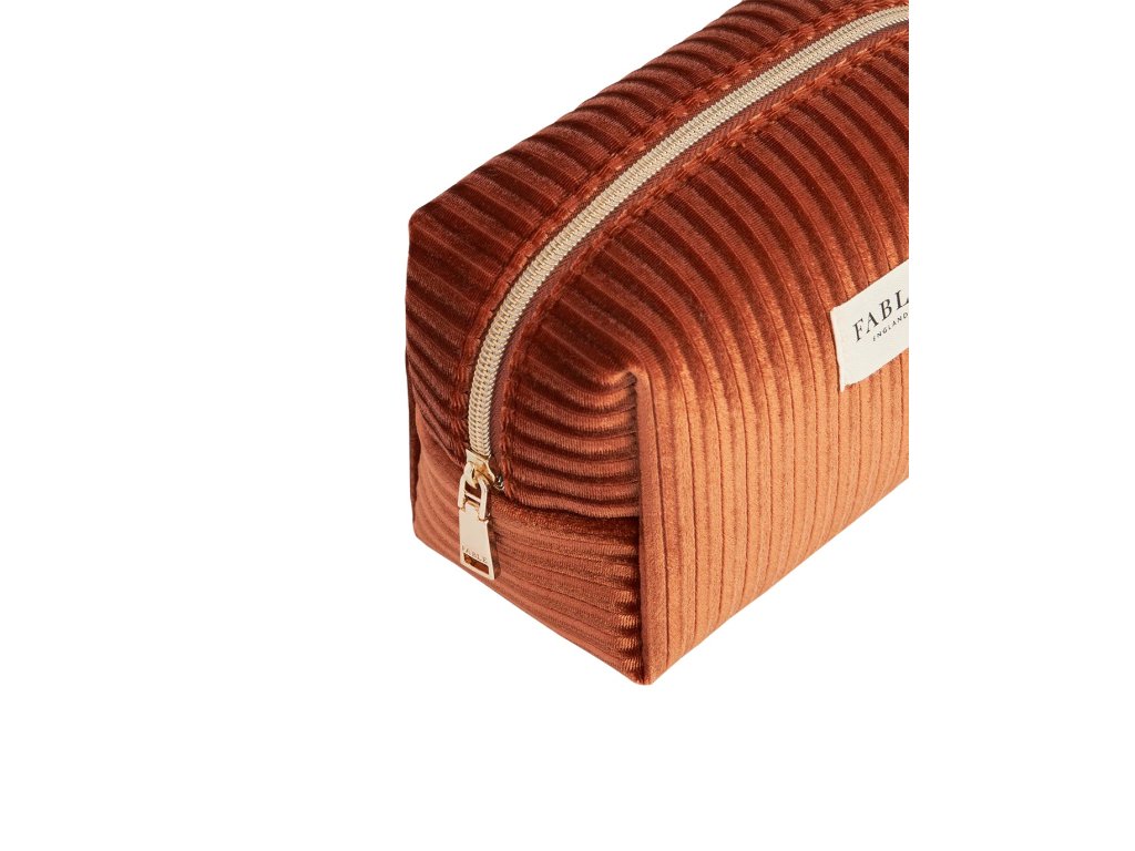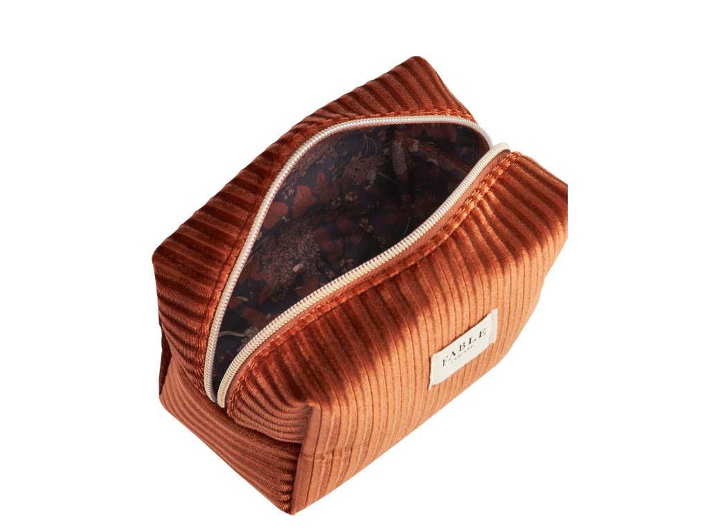 Objevte naši sametovou kosmetickou taštičku z rezavě manšestrového materiálu.
