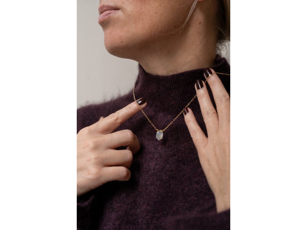 Pohádkový řetízek s výrazným měsíčním kamenem, jehož popelavé odstíny inspirovaly jméno šperku: Popelka, jemná, klasická a francouzská.