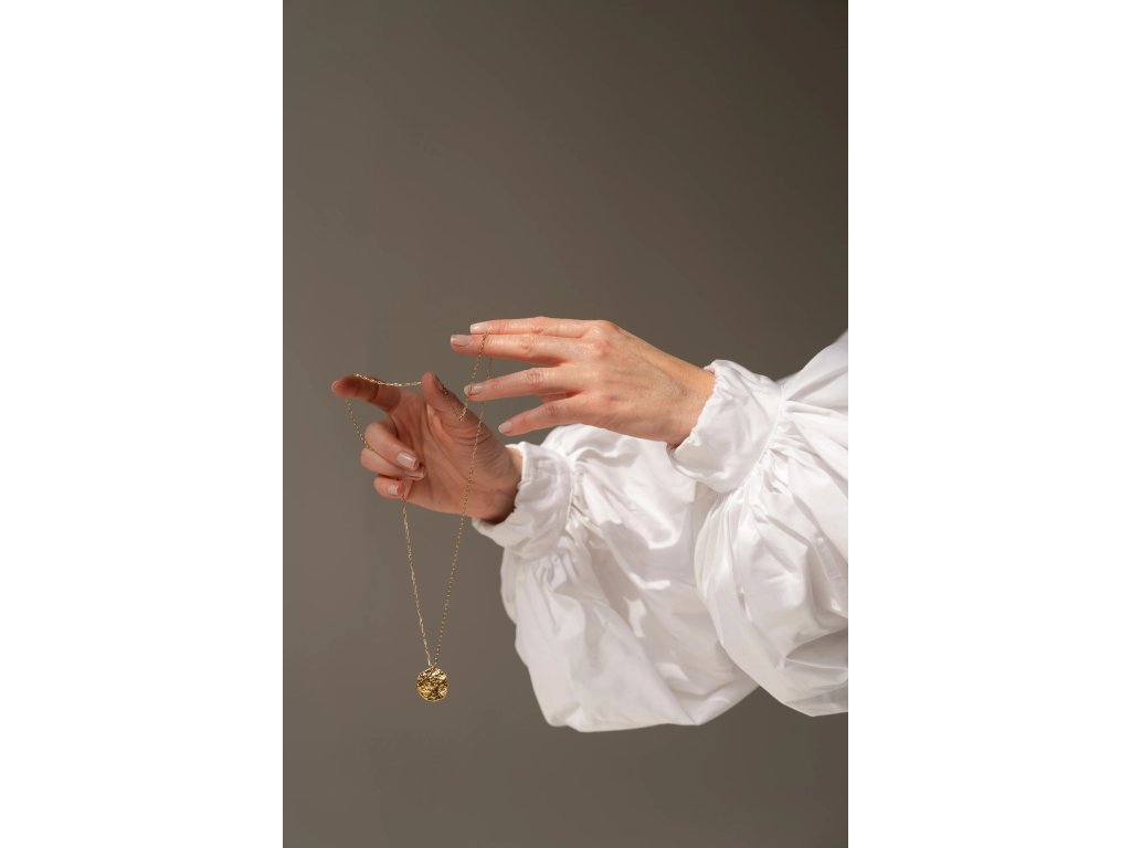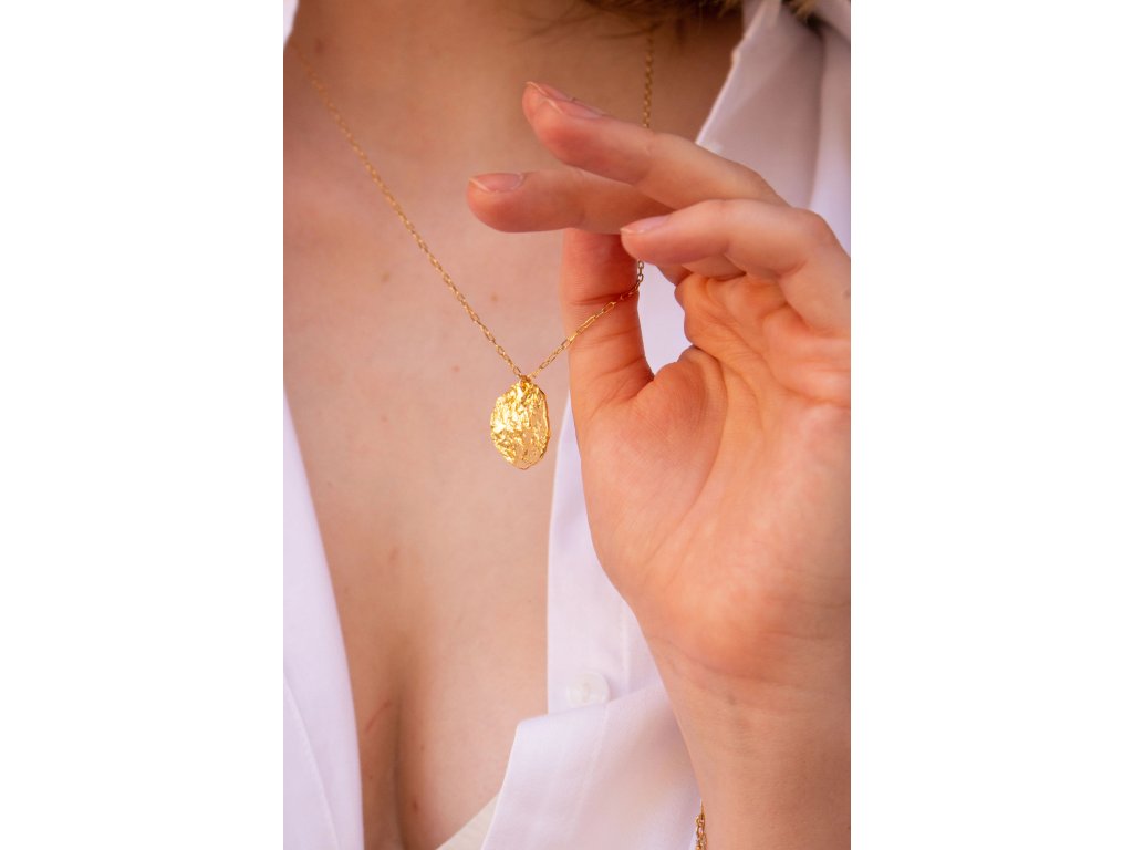 pozlacená varianta - řetízek: zlacená mosaz plátováním (goldfilled - 14K), komponenty: pozlacené stříbro AG925/1000 14K