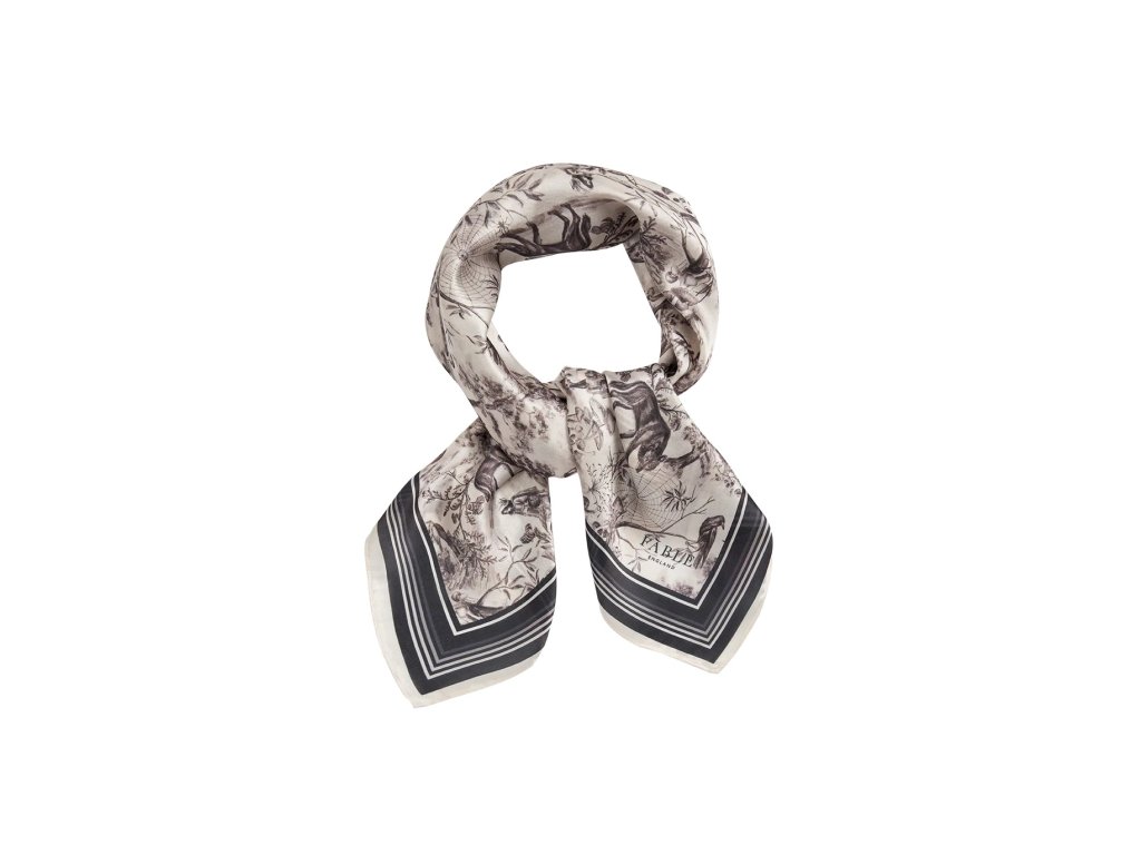 Styl: Šátek s potiskem. Barva: Černá. Detail: Hedvábný pocit na dotek, lehký splývavý materiál. Materiál: Polyester. Tvar: Čtvercový, přibližně 70 x 70 cm.